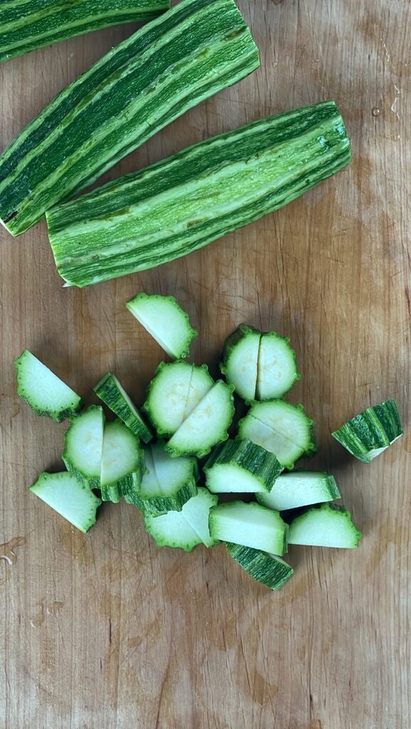 Une fois que l’ail a doré pendant quelques minutes, retirez-le de la poêle et ajoutez les courgettes : faites-les cuire pendant une dizaine de minutes en remuant de temps en temps.