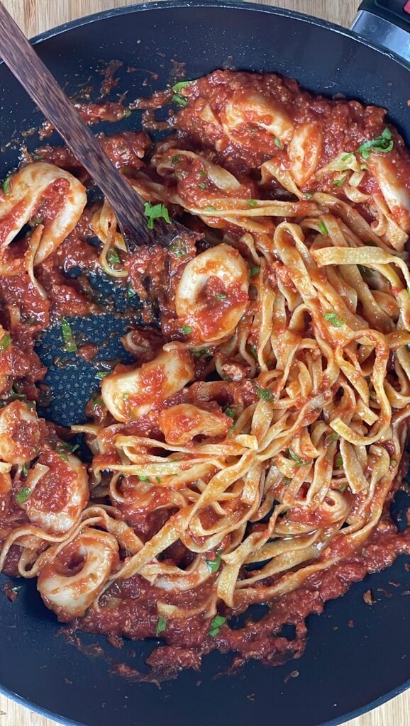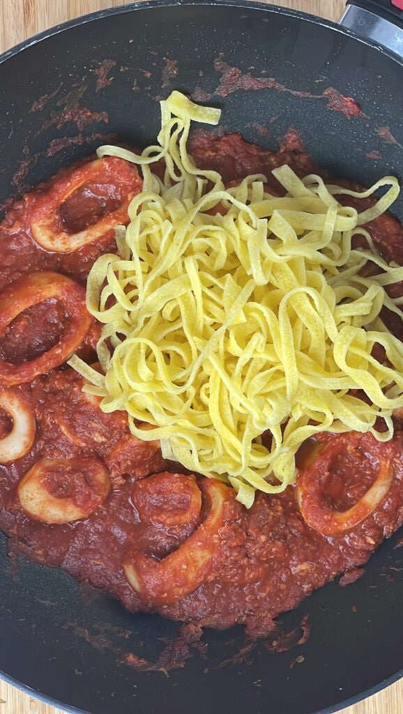 Pâtes à la sauce de calmars, un plat de mer parfumé, riche en goût et vraiment simple à préparer.