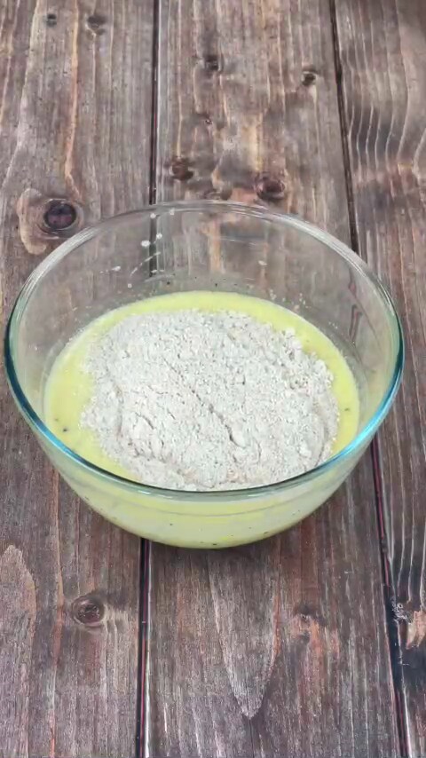 Ajoutez la farine complète dans la pâte et mélangez le tout avec une spatule.