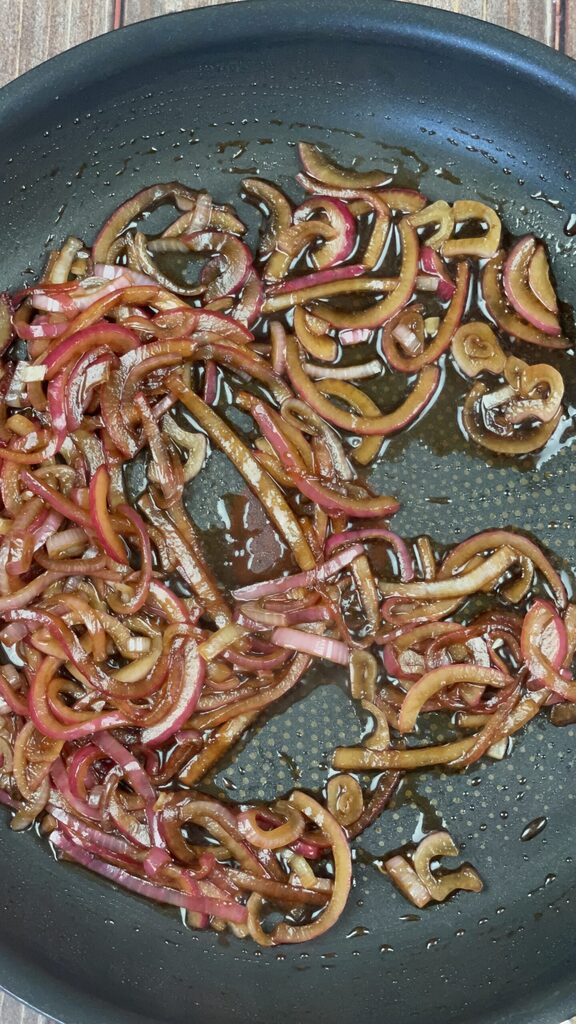 Fais-le revenir pendant quelques minutes, ajoute le vinaigre balsamique et fais-le cuire à feu doux pendant une dizaine de minutes. Retire-le de la poêle et mets-le de côté.