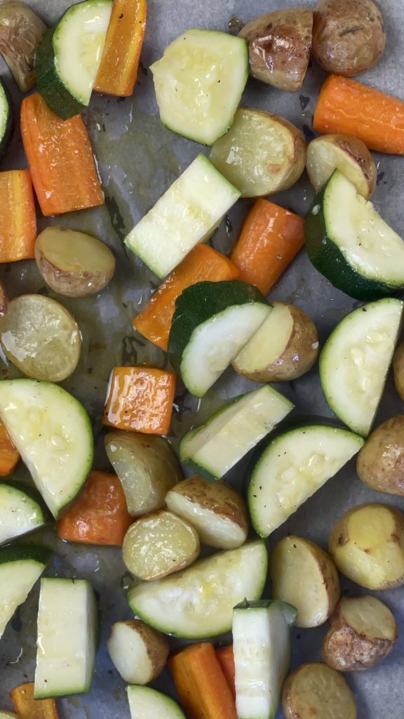 Pommes de terre, carottes et courgettes au four, un accompagnement délicieux et sain qui combine la douceur des légumes avec le croquant de la cuisson au four.