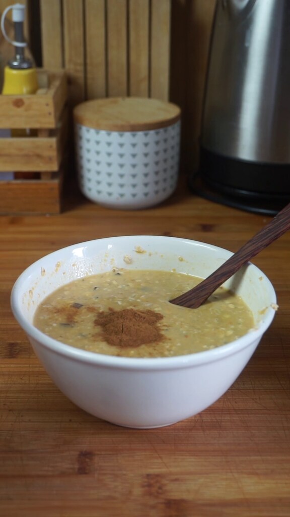 Ce porridge est parfumé avec le pumpkin spice, un mélange d’épices à base de cannelle qui est généralement utilisé pour la très célèbre Pumpkin Pie, la tarte au potiron.