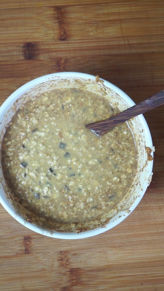 Mélangez une dernière fois et laissez reposer au réfrigérateur toute la nuit ou jusqu’à ce que les flocons d’avoine aient absorbé toute la boisson de soja.