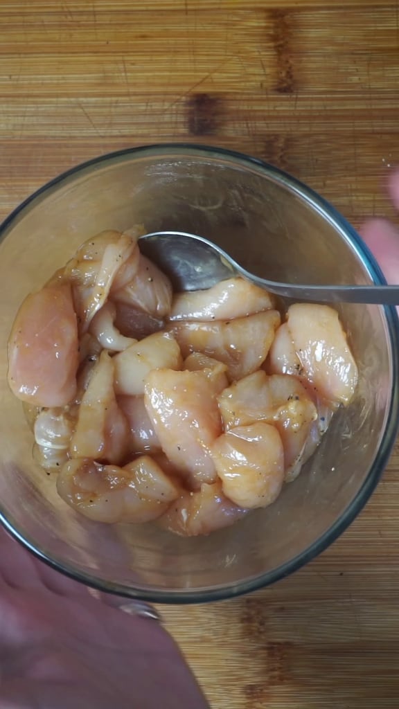 Mélangez bien, tous les cubes de poulet doivent être parfaitement assaisonnés.