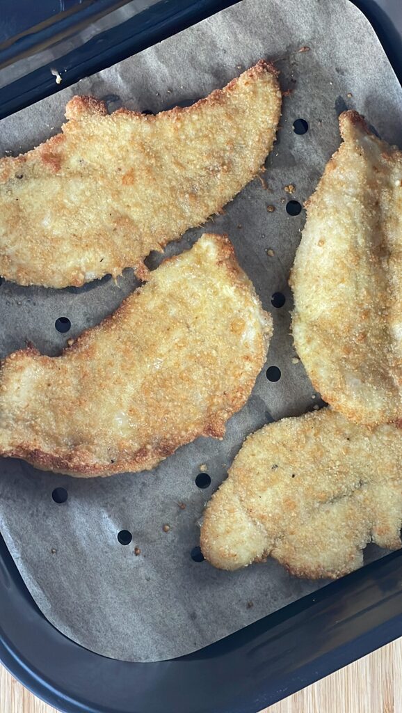 Filet de poulet pané au parmesan à la friteuse à air, un plat principal croustillant, savoureux et léger, parfait pour toute la famille.