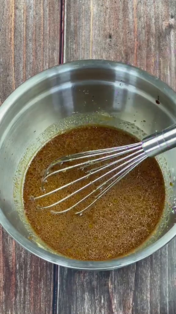Ajoute au mélange d’eau et de fécule le reste des ingrédients de la sauce et mélange le tout avec les fouets jusqu’à obtenir un mélange homogène.