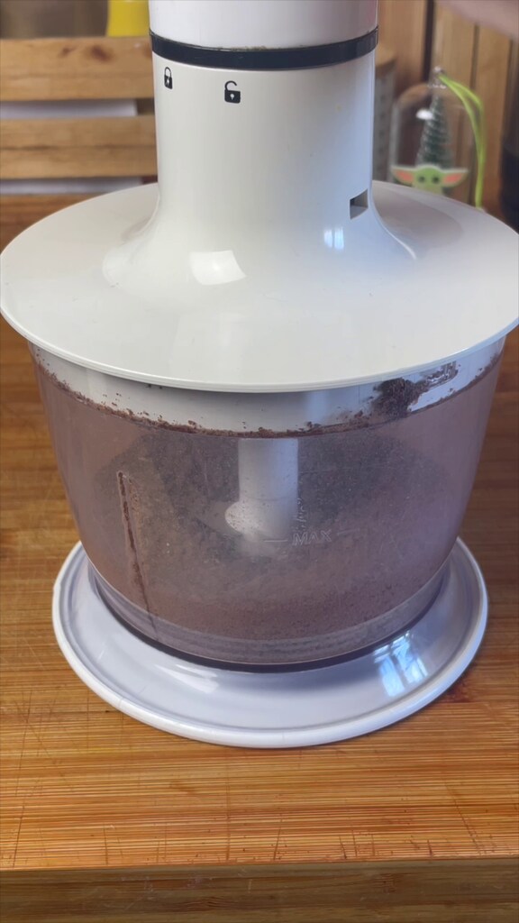 Donnez encore quelques impulsions au mixeur pour bien mélanger toutes les poudres.