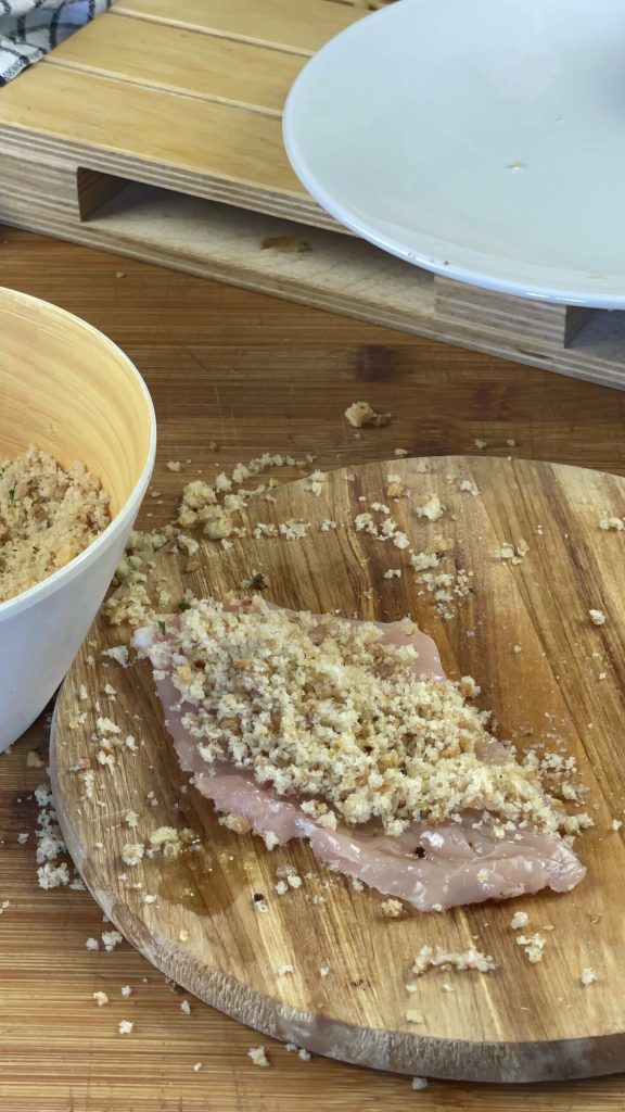Répète les étapes pour toutes les tranches de viande.Chauffe dans une poêle quelques cuillères d’huile d’olive extra vierge.