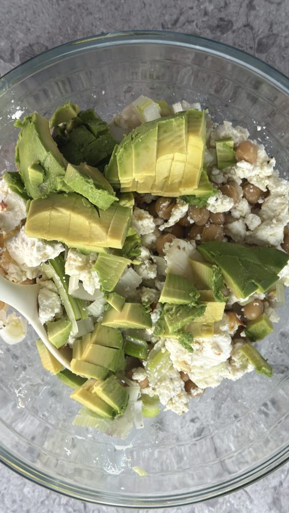 La salade de pois chiches et avocat à la feta et à l’oignon nouveau est un plat unique simple et équilibré, parfait à mettre sur la table en toutes saisons. Riche et satisfaisante, elle marie la texture crémeuse de l’avocat au goût salé de la feta cuite au four, qui après cuisson devient encore plus intense et agréable à émietter. Les pois chiches complètent la recette en la rendant consistante et naturellement protéinée, tandis que l’oignon nouveau apporte une note délicate et parfumée qui équilibre toutes les saveurs.