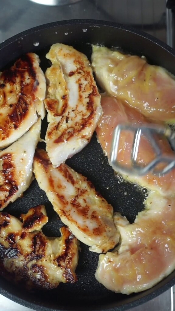 Cuisez le blanc de poulet dans une poêle avec un peu d’huile 3-5 minutes de chaque côté.