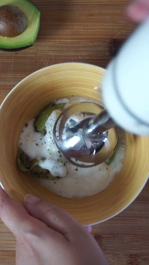 Mélangez le tout avec un mixeur plongeant jusqu’à obtenir une crème lisse et homogène.