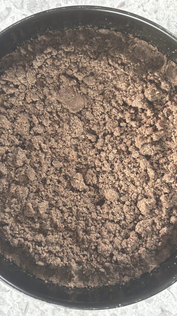 La recette est incroyablement rapide et à la portée de tous : il suffit de mélanger farine, cacao, sucre, huile et boisson végétale, ajouter la levure et obtenir une pâte friable à émietter directement dans le moule. Pas de manipulation compliquée, pas d’équipement particulier : même ceux qui ont peu de temps peuvent obtenir un gâteau prêt en peu de temps.