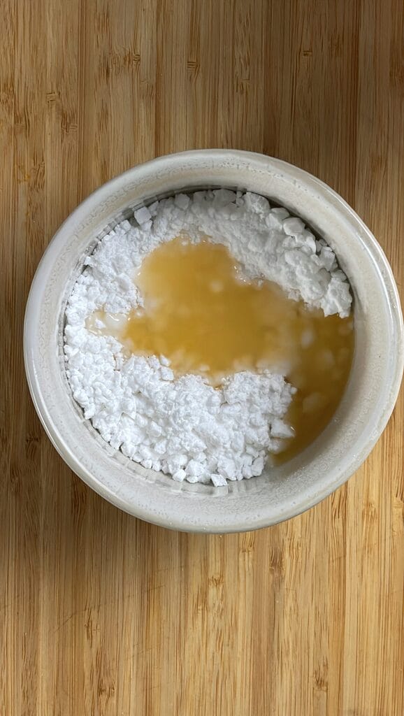 Entre-temps, préparez le glaçage en mettant dans un bol le sucre glace et une cuillère à soupe de jus de clémentines.