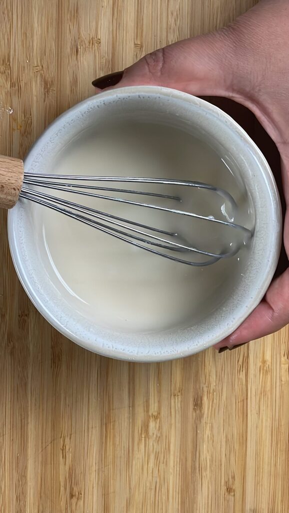 Mélangez avec un fouet ou une cuillère jusqu’à obtenir un mélange lisse et sans grumeaux ; la consistance ne doit pas être trop dense, ajustez si nécessaire en ajoutant plus de jus ou de sucre.