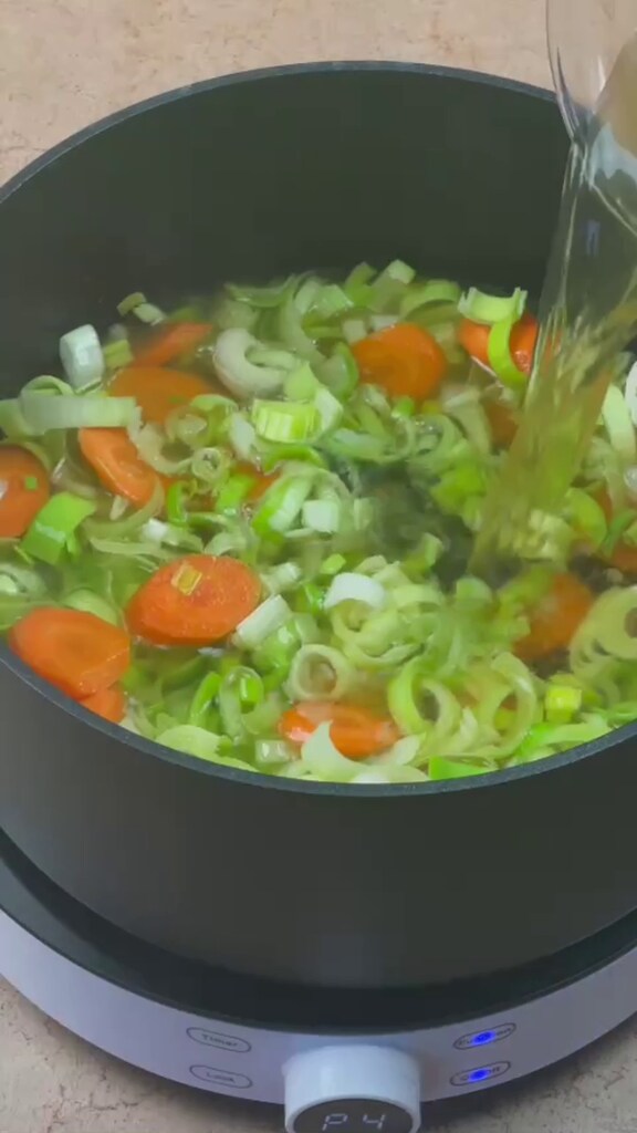 Tu peux enrichir la soupe de poulet et poireaux avec d’autres légumes que tu as au réfrigérateur, la rendant ainsi anti-gaspillage.