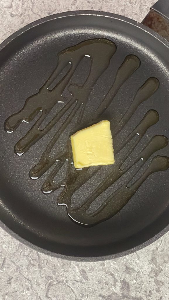 Ajoutez à votre goût quelques feuilles de basilic frais.Chauffez dans une poêle l’huile d’olive extra vierge avec une noisette de beurre.