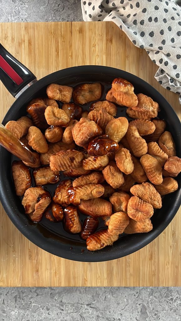 Si tu préfères, tu peux utiliser la friteuse, règle-la à 170°C et fais cuire jusqu’à ce qu’ils soient bien dorés.Réchauffe le miel de figues à feu très doux dans une poêle à bords hauts ou dans une casserole jusqu’à ce qu’il devienne suffisamment fluide