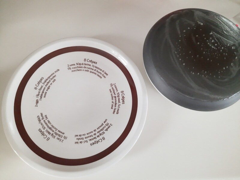 N.B. La poêle ne doit pas être trop chaude, sinon la pâte formera des bulles, mais pas non plus trop froide, car la pâte n’adhérerait pas.