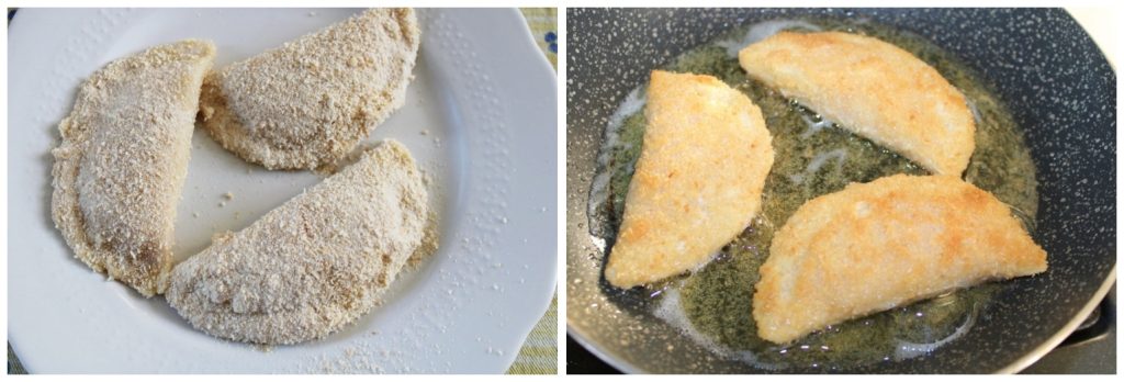 À la poêle: faites frire les demi-lunes dans une grande quantité d’huile d’olive (l’extra vierge serait mieux, mais elle a ses coûts) pendant environ 2-3 minutes de chaque côté, jusqu’à ce qu’elles soient dorées et croustillantes.