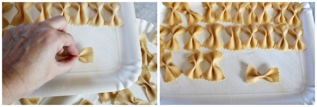 Mettez les farfalle sur des plateaux en papier ou sur le plan de travail et laissez-les reposer quelques minutes, espacées entre elles.