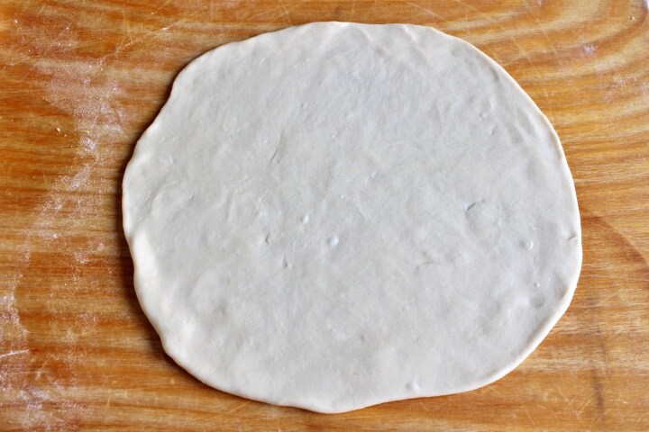 Après le temps de repos, étalez chaque boule sur le plan de travail légèrement fariné à l’aide d’un rouleau à pâtisserie.