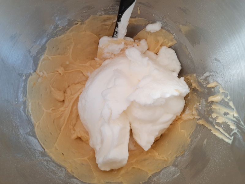 Pour finir, ajoutez très délicatement aussi les blancs montés en neige.