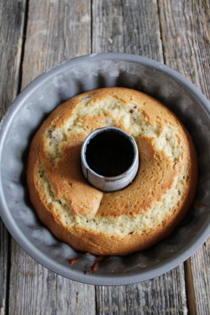Prenez un moule à gâteau ou à couronne, de 24 – 26 cm de diamètre, beurrez-le et farinez-le bien et versez à l’intérieur la préparation ; et enfournez dans un four déjà chaud pendant environ 35 – 40 minutes (pour moi 37 minutes).