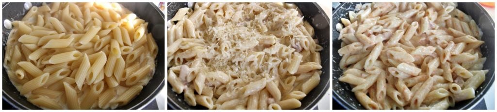 C’est le genre de pâtes que Luca, mon fils, aime : riches, consistantes et crémeuses. Il adore les fromages et associés aux pâtes, c’est vraiment une bombe. J’ai également ajouté une touche de sauce pour donner un aspect un peu plus coloré au plat et je dois dire que cela a bien fonctionné.