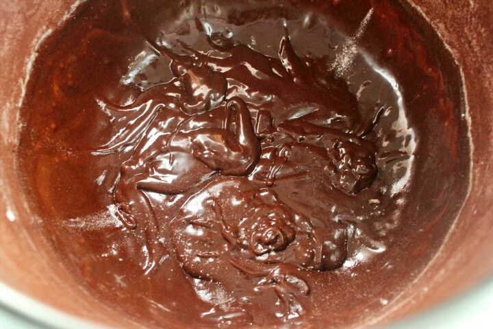 Ensuite, ajoutez la Nutella (faites-la chauffer 30 secondes au micro-ondes), la farine tamisée avec la levure (pour éviter la formation de grumeaux), le cacao amer et enfin, une pincée de sel.