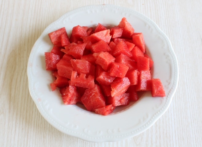 Tout d’abord, enlevez la peau et les pépins de la pastèque, en recueillant dans une assiette le jus qui sortira de la chair pendant l’opération. Pressez le citron, filtrez-le des éventuels pépins, et mettez-le de côté, avec le sucre.