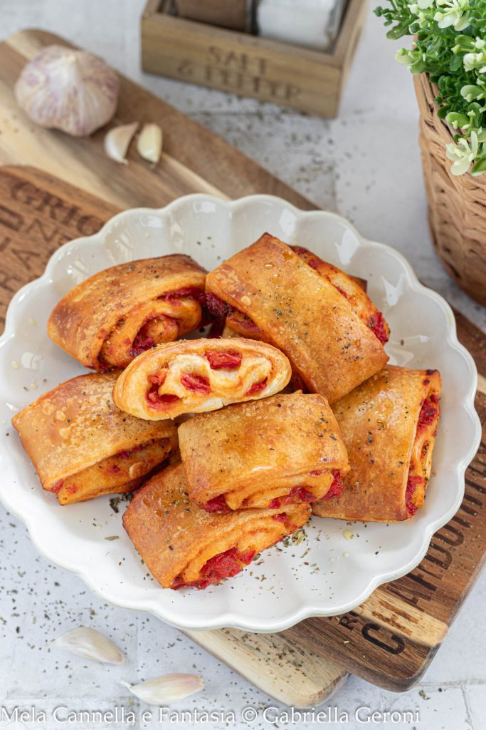 • Une fois prêts, sortez-les du four, laissez-les refroidir légèrement et puis servez ces délicieux roulés de pizza à la tomate !