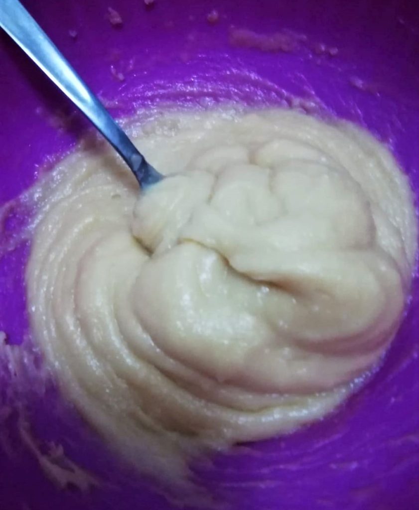 Ajoutez maintenant le deuxième œuf et continuez à bien amalgamer la pâte jusqu’à ce qu’elle devienne lisse et homogène.