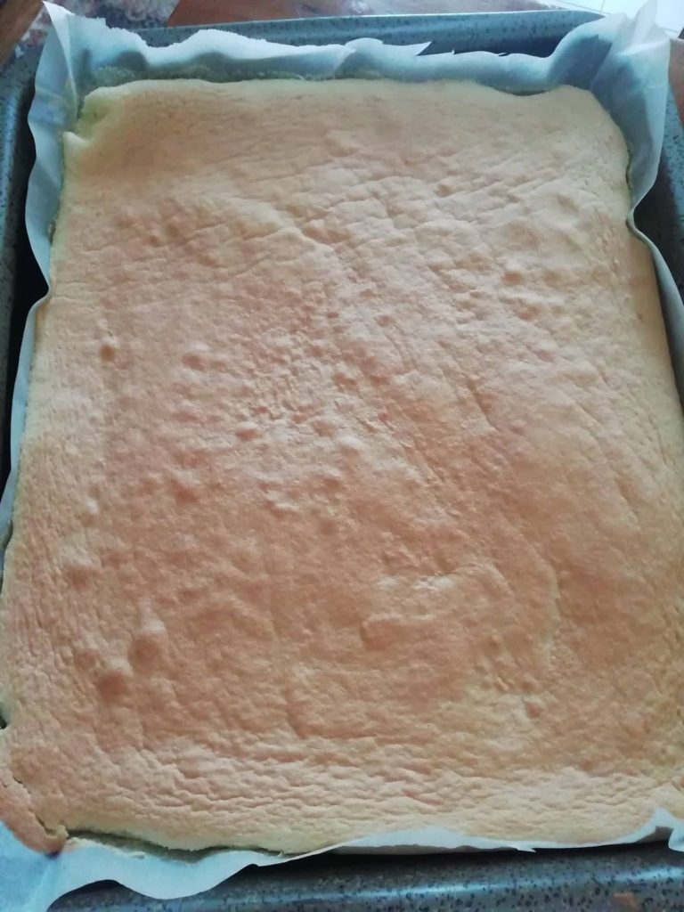 Préchauffez le four à 180 degrés et faites cuire le biscuit roulé pendant 8-9 minutes.