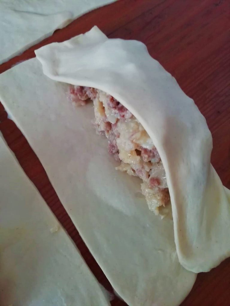Les bonbons rustiques pommes de terre et saucisse sont faits avec la pâte magique sans œufs, celle que j’utilise pour préparer le strudel salé aux pommes et oignons. Dans ce cas, on doublera les doses pour obtenir 8 portions et on donnera à la pâte la forme d’un bonbon farci de pommes de terre et de saucisse.