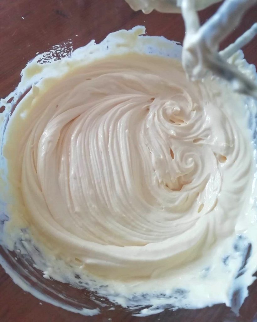Versez le sirop dans le mélange d’œufs et de sucre, un peu à la fois, puis battez le tout avec les fouets. Enfin, ajoutez le mascarpone et travaillez la crème jusqu’à ce qu’elle devienne dense et compacte.