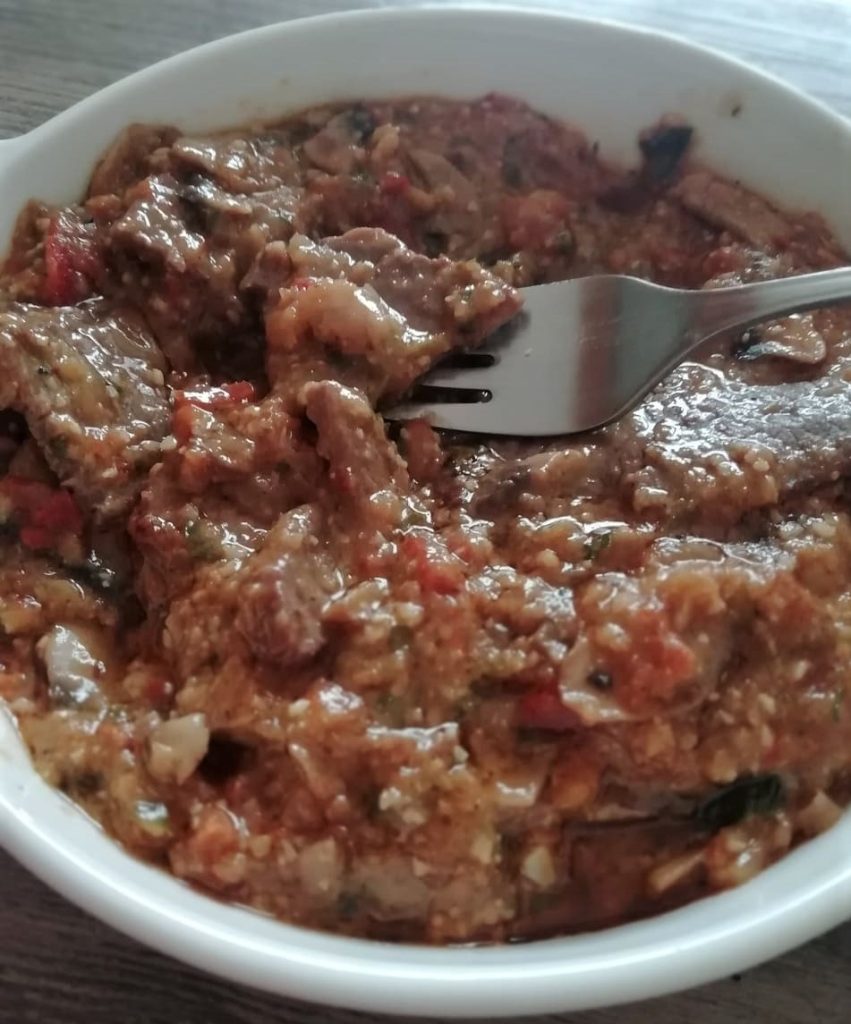 À la fin de la cuisson, versez le pesto aux amandes sur la viande et secouez la casserole pour le mélanger, éteignez le feu.