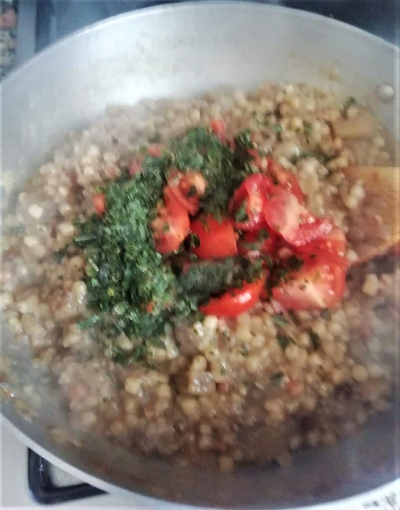 Pesez la fregola, qui dans cette recette sera de gros grains déjà toastés, et mettez-la de côté.