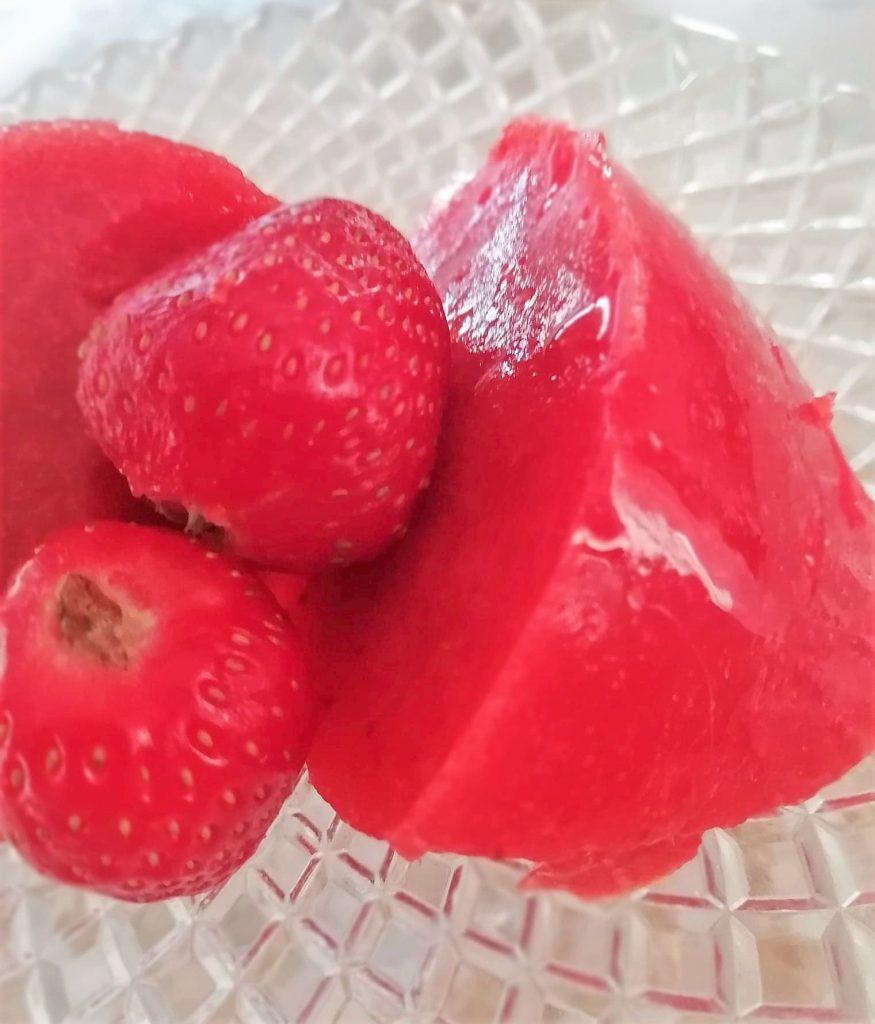 Vous pouvez préparer la gelée de fraises sans gélatine soit avec le jus des fraises soit avec toute la pulpe et l’utiliser pour créer des desserts spectaculaires en la combinant avec d’autres gelées comme par exemple celle au citron ou à la noix de coco, puis lui donner la forme que vous voulez dans des coupelles.