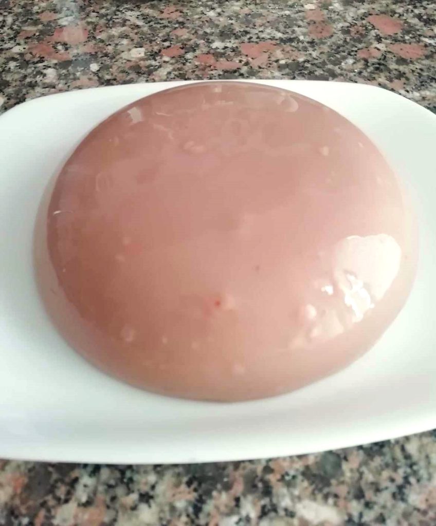 Avec la dose de cette recette, vous obtiendrez 2 portions, mais vous pourrez doubler ou tripler les ingrédients. Versez-la dans des bols ou des moules individuels préalablement humidifiés avec de l’eau et enfin laissez-la solidifier au réfrigérateur pendant 1-2 heures.