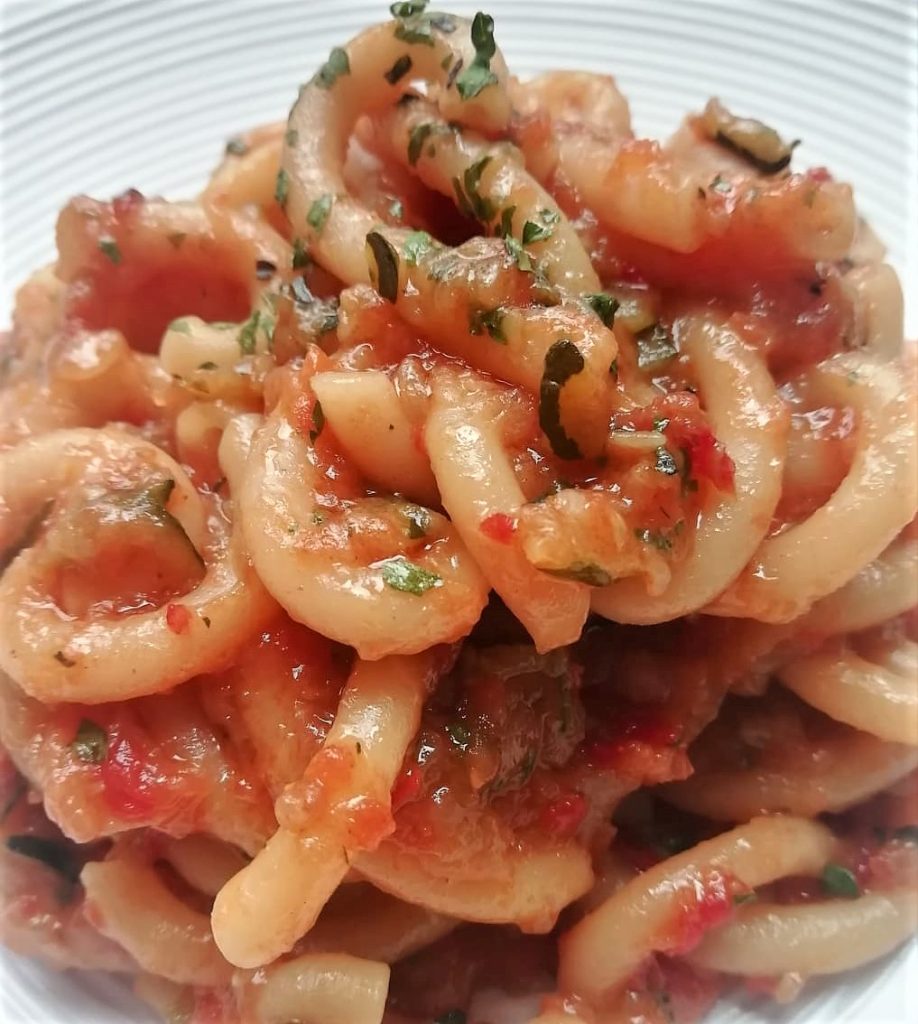 La technique de préparation est la même que pour les filini à la poêle avec des friggitelli (cliquez sur le lien pour voir la recette) : la seule différence est que j’ai utilisé une grande poêle pour pâtes. Les quantités conviennent pour 2/3 personnes, mais si vous êtes plus à table, il suffit de doubler les ingrédients.