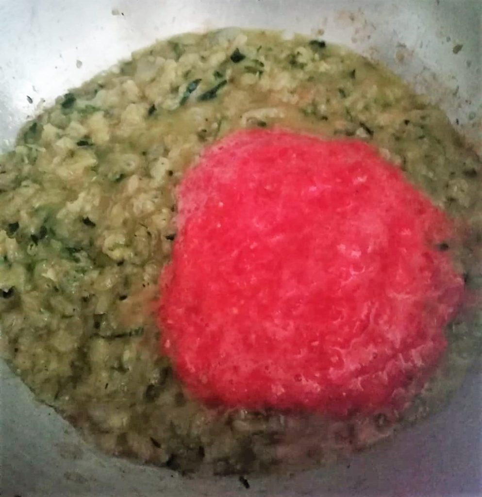 Laissez cuire à feu moyen, couvert, encore 5/7 minutes en remuant de temps en temps pour éviter que ça n’accroche.