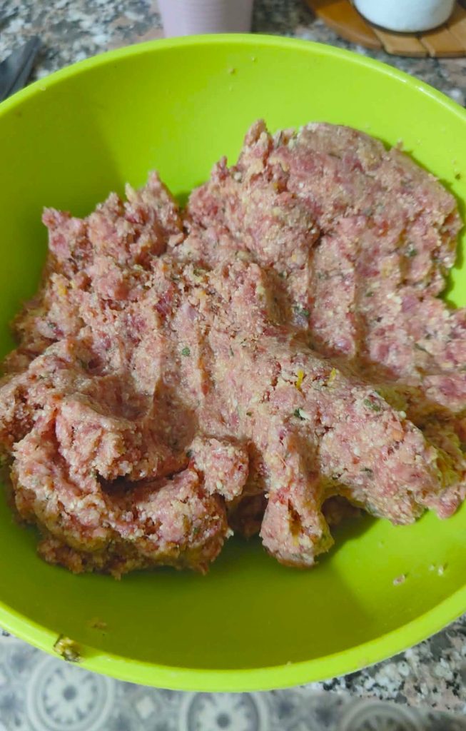 – tous les autres ingrédients : chapelure, fromage râpé, œufs, lait, ail pressé au presse-ail, persil haché et le sel. Ajustez la quantité de sel selon vos goûts.