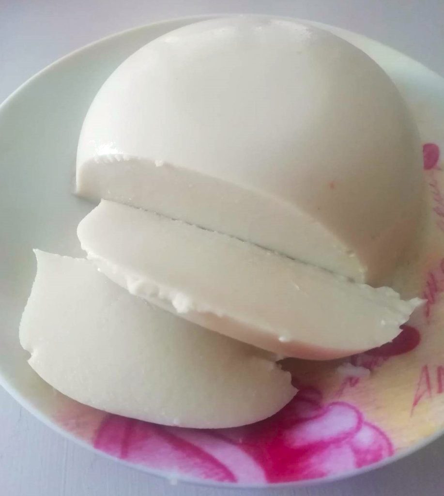 Après le temps de refroidissement, vous pouvez démouler et retourner la mozzarella sur une assiette. Elle se conserve au réfrigérateur pendant quelques jours, et utilisez-la où vous le souhaitez, elle est excellente sur la pizza, vous pouvez la trancher ou la râper.