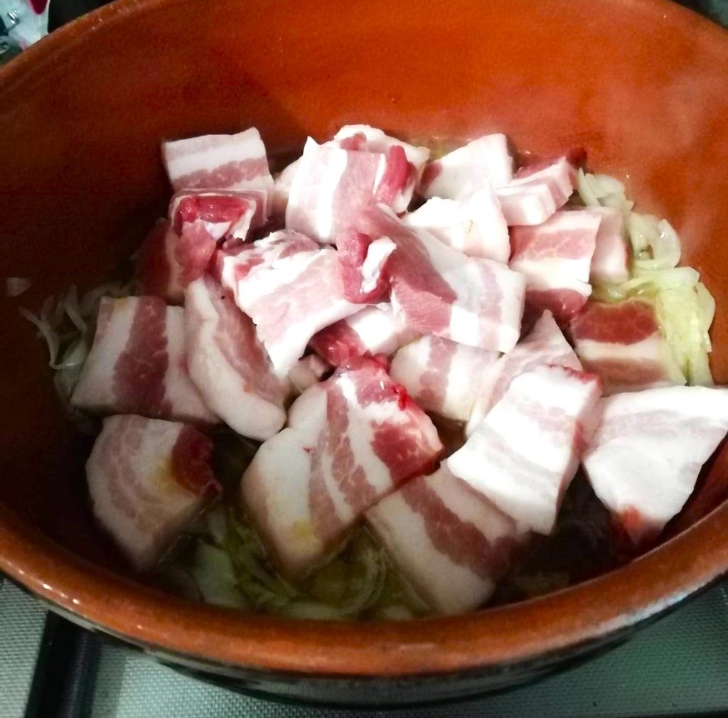 • 500 g pancetta de porc fraîche (ou moitié pulpe de porc et moitié pancetta)