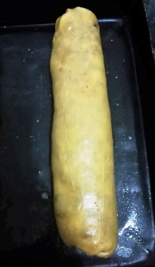 10 – Badigeonnez la surface du rouleau de beurre fondu et faites cuire dans un four préchauffé à 170 degrés en convection pendant 35 minutes.
