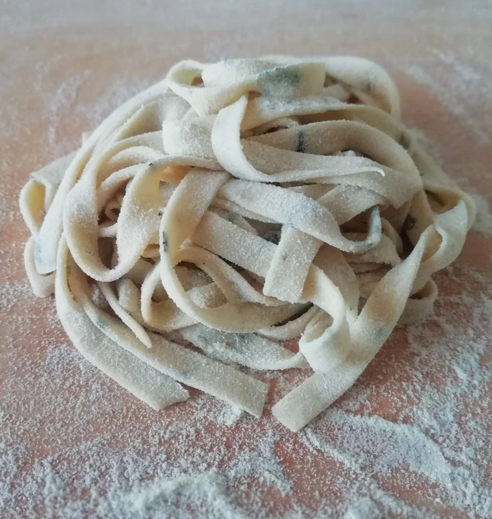 Dans cette recette, nous allons révolutionner la recette classique des tagliatelles, en réduisant de moitié la quantité d’œufs et en ajoutant du basilic et du parmesan à la pâte. Et pendant que vous avez les mains dans la pâte, essayez aussi de faire les sagne ‘ncannulate fettucines enroulées, sans œufs.
