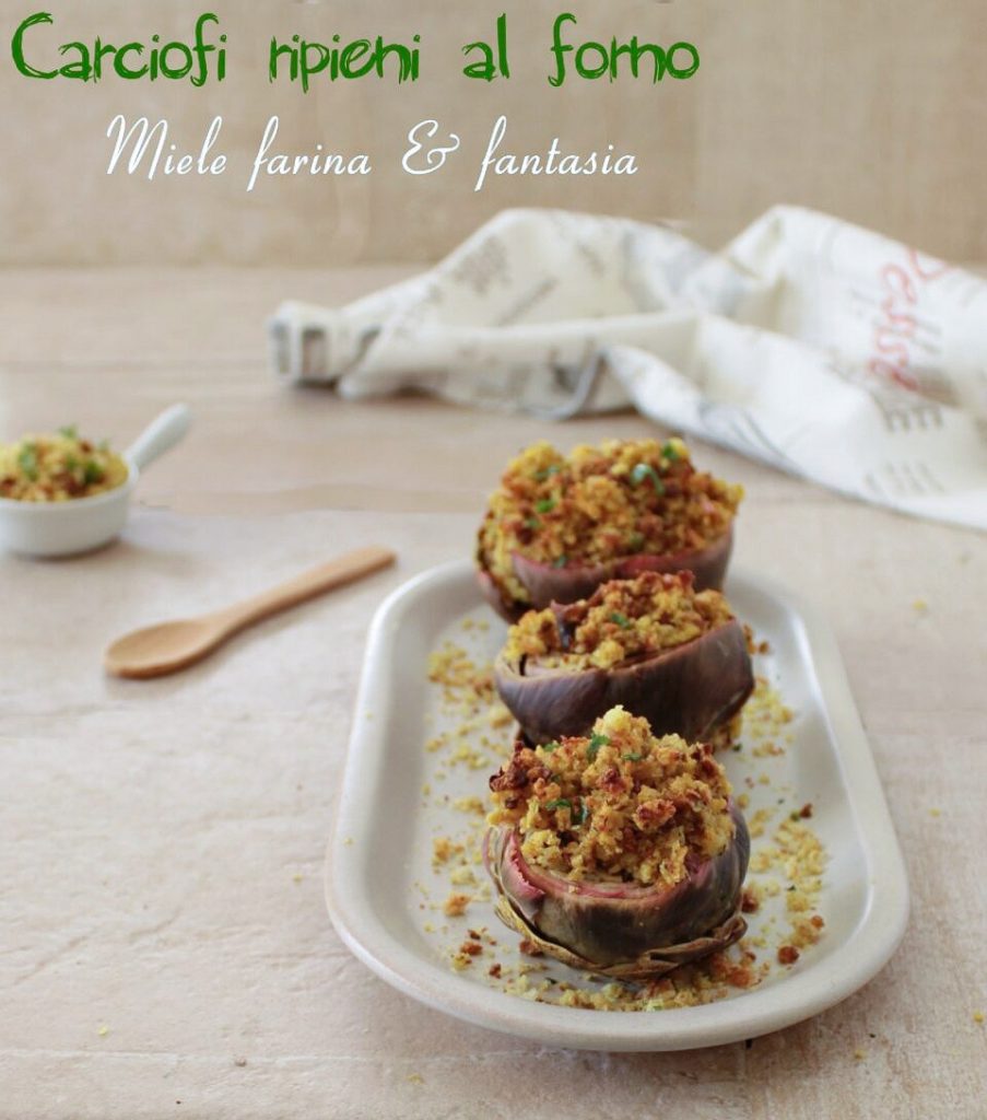 Les artichauts farcis au four sont un accompagnement facile à réaliser et très savoureux, à servir aussi bien pour le déjeuner que pour le dîner. La farce végétarienne que j’ai choisie pour les artichauts est très simple, faite avec peu d’ingrédients mais qui les rend très appétissants. Les artichauts sont de saison maintenant, alors profitons-en pour les cuisiner de différentes manières : dans une omelette, comme sauce pour bruschettas, dans les risottos, dans les lasagnes etc… Les artichauts peuvent être farcis de différentes manières, même avec de la viande, du riz, et ainsi de suite, selon les goûts et les occasions.