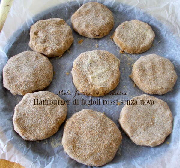 Aujourd’hui, je vous propose les burgers de haricots rouges sans œufs. Les légumineuses sont un aliment très nutritif, riche en protéines végétales et en fibres ; elles contiennent également peu de graisses. Avec elles, on peut préparer d’innombrables plats délicieux, comme ces « burgers » qui ne contiennent ni œufs ni produits laitiers et sont complètement végétariens. C’est une façon nouvelle, différente et savoureuse de proposer les légumineuses, qui plaira aussi aux enfants qui ne les aiment généralement pas. Les burgers de haricots rouges sans œufs peuvent être préparés à l’avance et cuits ensuite au moment voulu. Dans cette recette, on peut aussi utiliser des haricots déjà prêts en boîte.