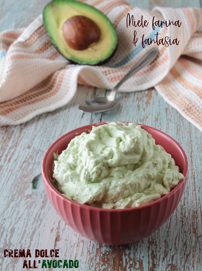 La crème dessert à l’avocat est prête. Nous pouvons la servir immédiatement, ou la personnaliser davantage avec de la liqueur (pas plus d’une cuillère à café, sinon la crème deviendrait trop fluide), des pépites de chocolat, du café en poudre, des amaretti émiettés (qui doivent cependant être ajoutés seulement au moment de servir le dessert, pour éviter qu’ils ne deviennent molles) et ainsi de suite.