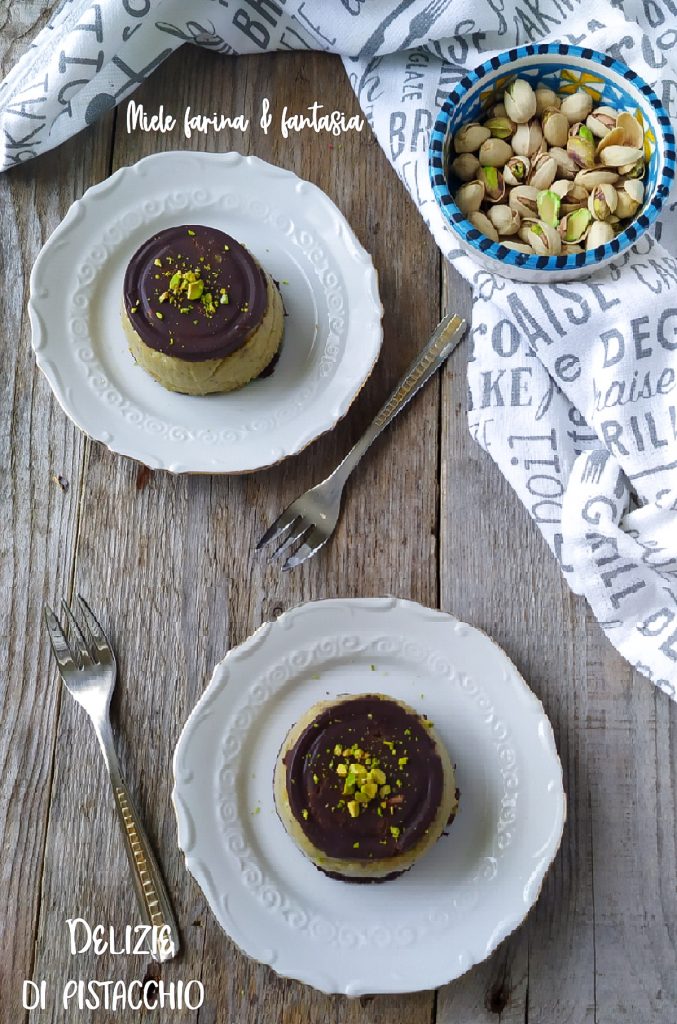 Renversons les desserts dans les assiettes, décorons avec la granule de pistaches et voilà… le dessert est servi. Les délices de pistaches et chocolat peuvent être conservés au réfrigérateur bien couverts.